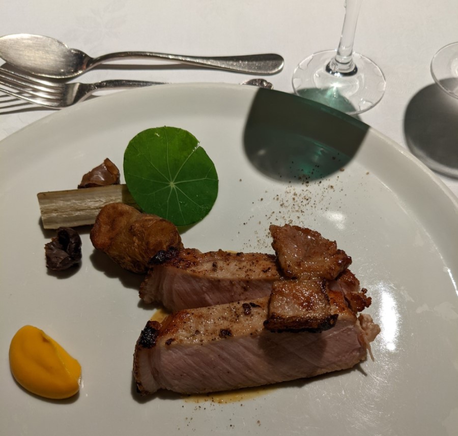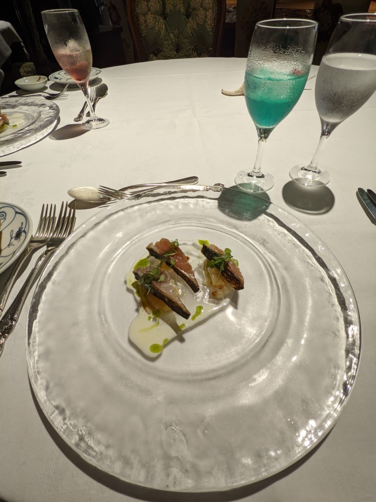 屋根一面をナニワイバラに覆われたオープンから40年を迎える本格フレンチレストラン。 8メートルを超える1枚板のシグニチャーテーブル、フランスをイメージさせるアンティークな店内では旬の食材を使ったコース料理をいただけます。 こちらのレストランは、あの岡本太郎さんが足しげく通ったことでも有名なお店です。